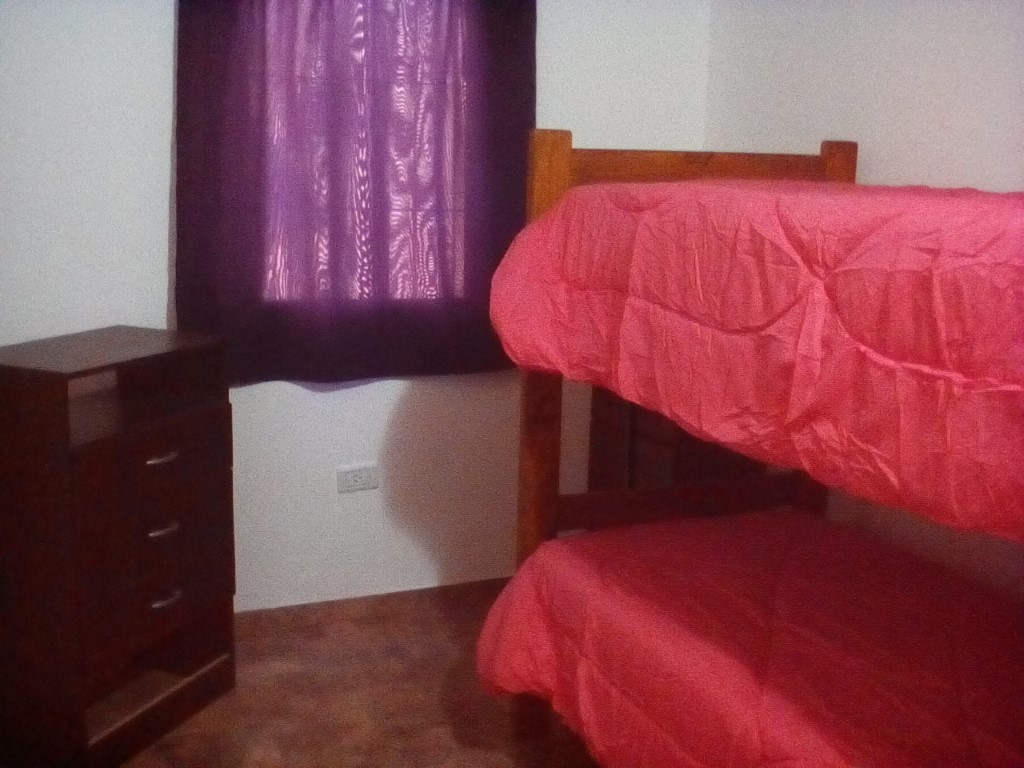 Cabaña de 4 ambientes con 1 dormitorio matrimonial, otro dormitorio con 1 cama de 1 plaza más 1 cama carrito y tercer dormitorio con 1 cama de 1 plaza.