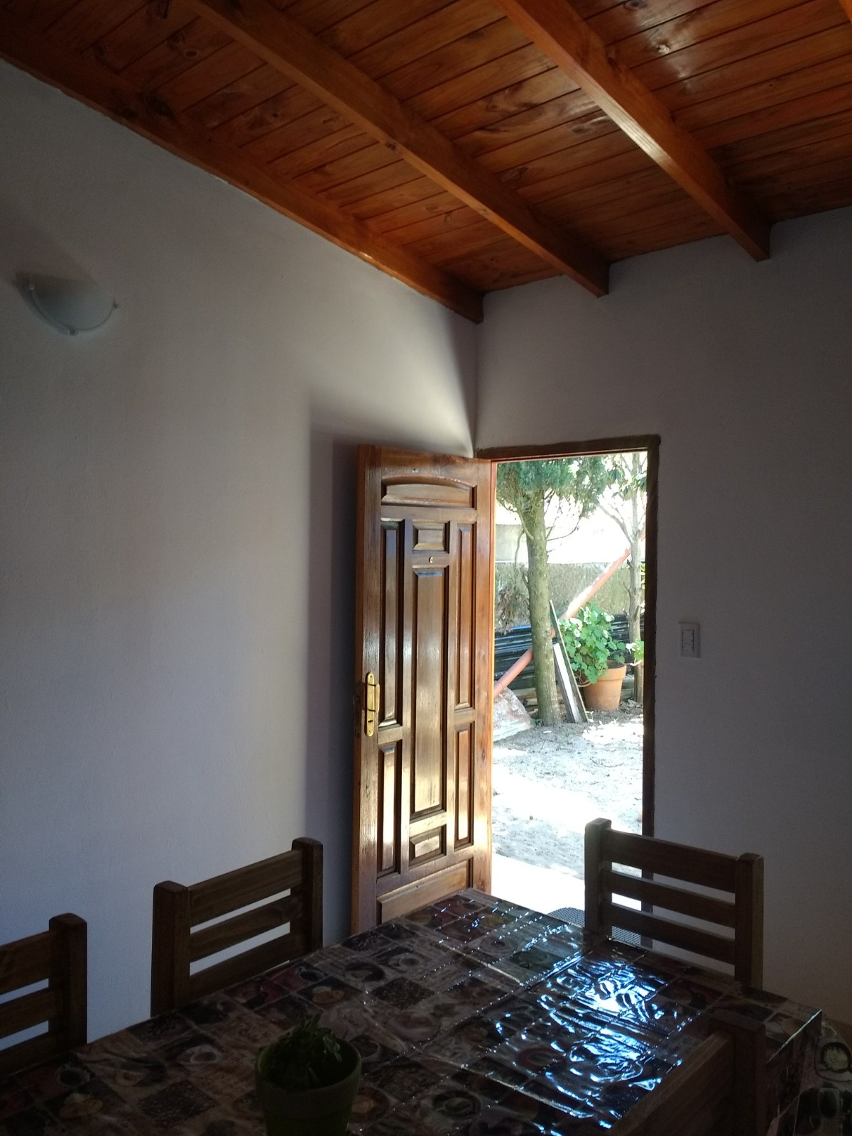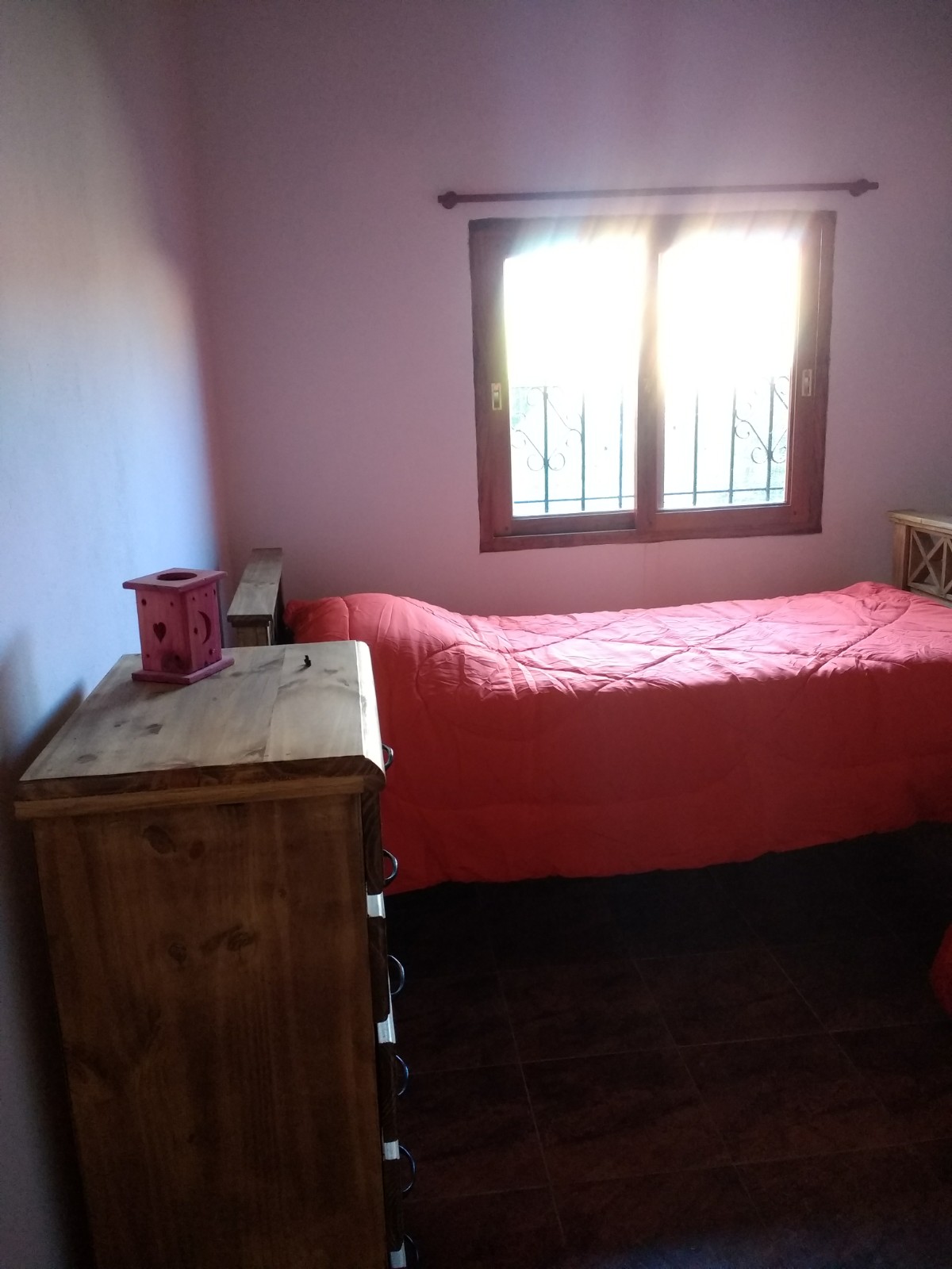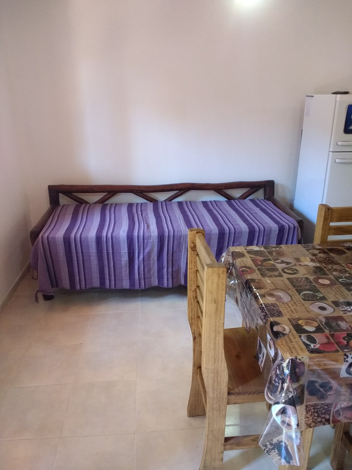 Cabaña de 3 ambientes en planta baja con 1 dormitorio matrimonial y otro dormitorio con 2 camas de 1 plaza más 1 cama carrito.